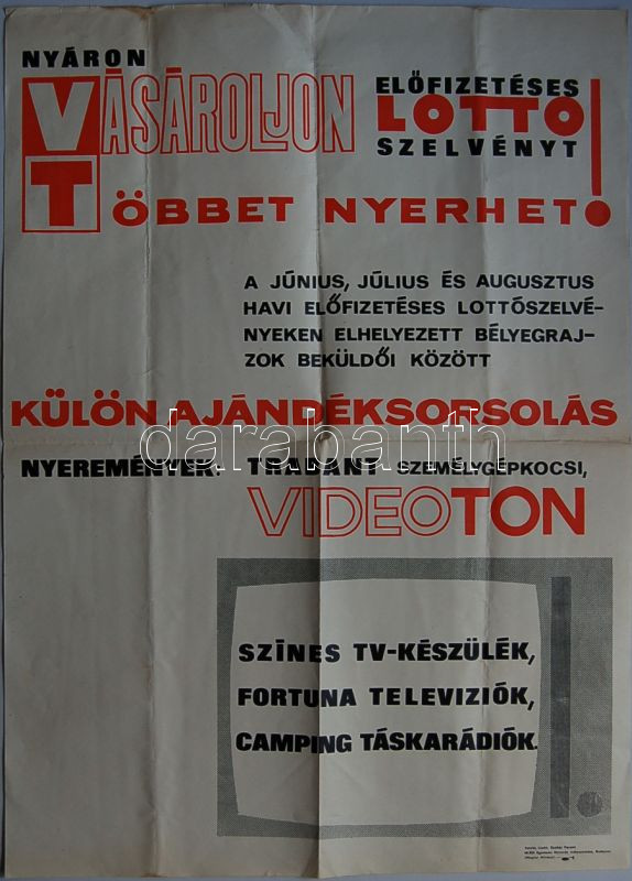 1968 Előfizetéses Lottó plakát https://www.darabanth.com/de/22-Fernauktion/22.0/Andere-Sammelgebiete/~183/1968-Elofizeteses-Lotto-plakat~II42855