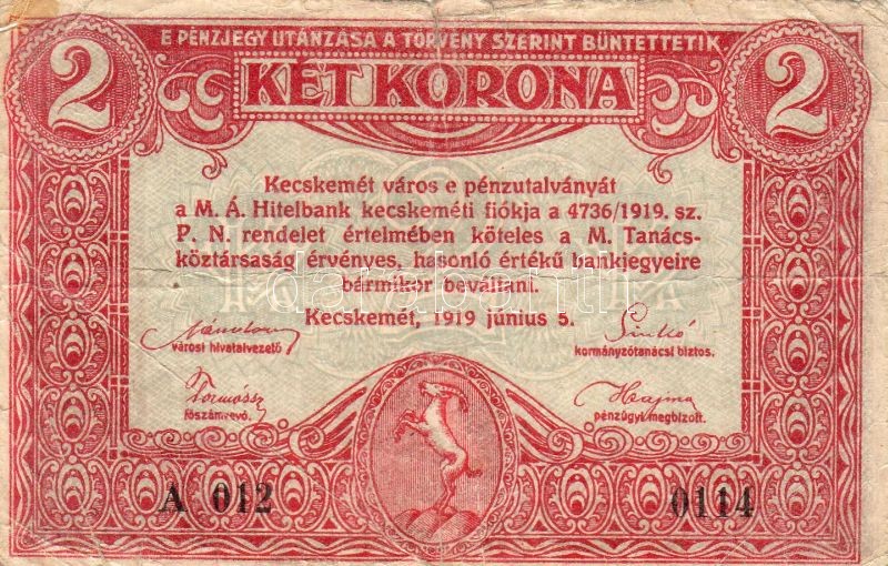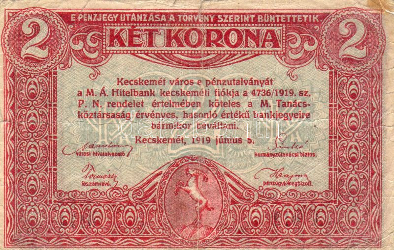 1919 2k kecskeméti szükségpénz T:II-III https://www.darabanth.com/de/22-Fernauktion/22.0/Numismatik/~167/1919-2k-kecskemeti-szuksegpenz-TII-III~II20127