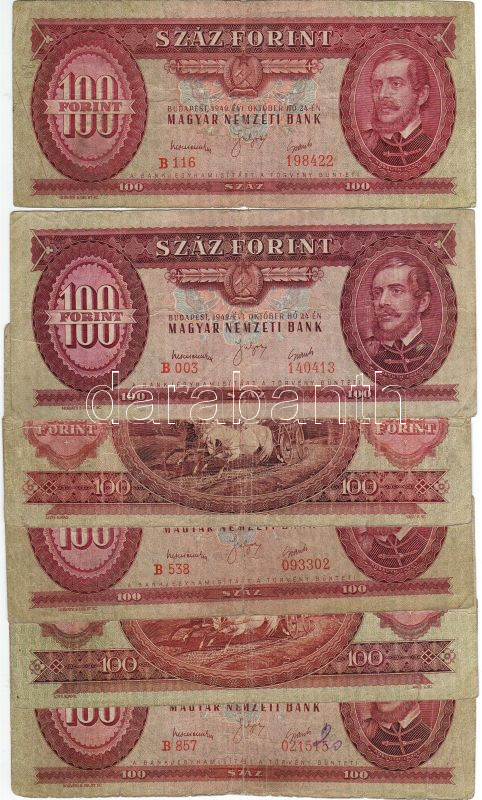 1949 100Ft 6db T:II,III,IV https://www.darabanth.com/de/22-Fernauktion/22.0/Numismatik/~167/1949-100Ft-6db-TII-III-IV~II43186