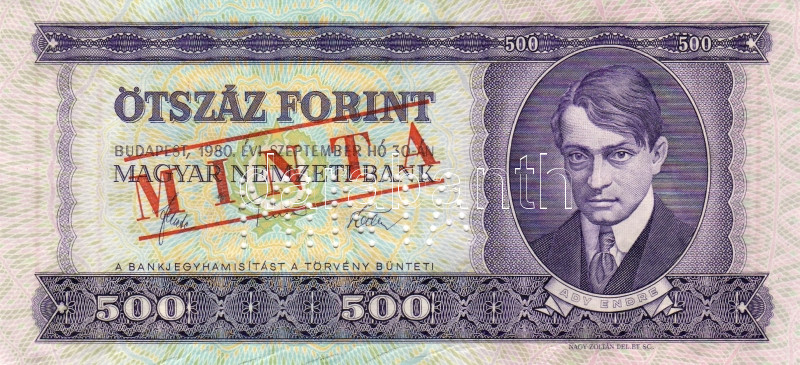 1980 500Ft "Minta" fny és perforáció T:I R! https://www.darabanth.com/de/22-Fernauktion/22.0/Numismatik/~167/1980-500Ft-Minta-fny-es-perforacio-TI-R~II41995