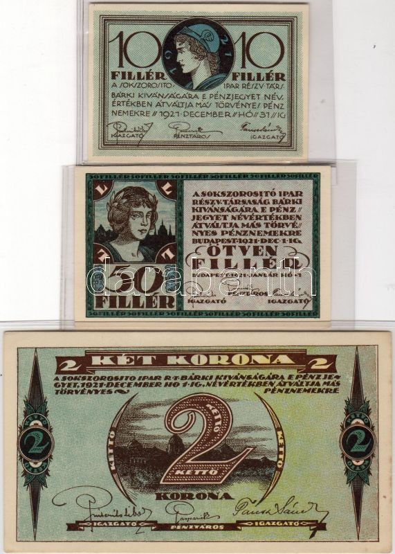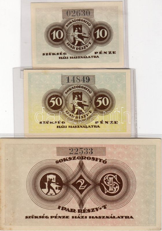 Beschreibung: Dátum nélkül "Sokszorositó..." 10f, 50f, 2K, szükségpénz 3db T:I