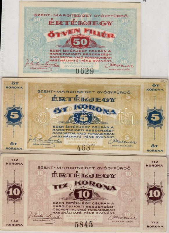 Dátum nélkül "Szt. Margit gyógyfürdő" 50f, 5K, 10K szükségpénz 3db T:... https://www.darabanth.com/de/22-Fernauktion/22.0/Numismatik/~167/Datum-nelkul-Szt-Margit-gyogyfurdo-50f-5K-10K-szuksegpenz-3db-TI~II39266