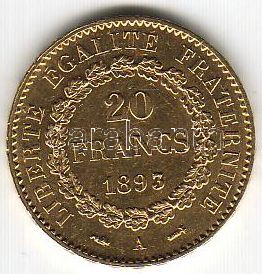 Beschreibung: Franciaország 1893 20Fr arany 6,4516gr T:2 Aranyárban !