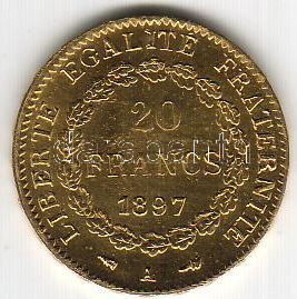 Beschreibung: Franciaország 1897 20Fr arany 6,4516gr T:2 Aranyárban !