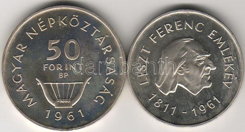 1961 "Liszt" 25Ft + 50Ft ezüst T:BU https://www.darabanth.com/de/22-Fernauktion/22.0/Numismatik/~170/1961-Liszt-25Ft-plus-50Ft-ezust-TBU~II40095