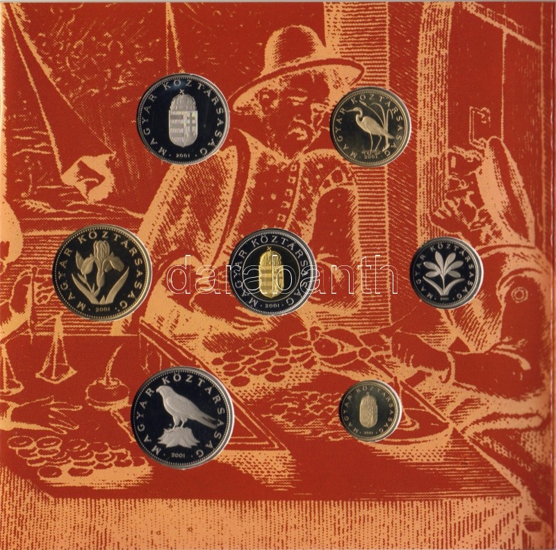 Beschreibung: 2001 forgalmi szet 1Ft-100Ft 7db díszcsomagolásban T:PP RR!! csak 3000db!!