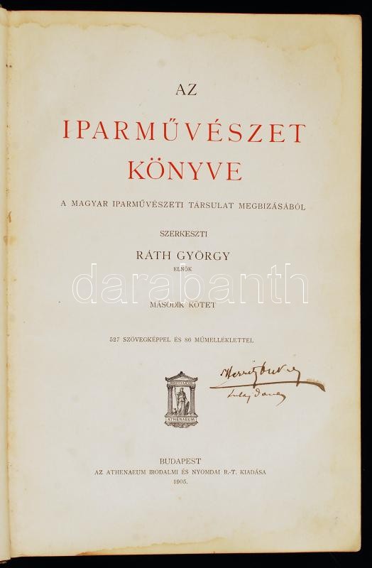 Az iparművészet könyve. Szerk.: Ráth György. 2. köt. Bp., 1905., Athen... https://www.darabanth.com/de/220-Fernauktion/220.0/Andere-Sammelgebiete/Bucher-Architektur-Kunst~10017/Az-iparmuveszet-konyve-Szerk-Rath-Gyorgy-2-kot-Bp-1905-Athenaeum-Tulajdonosi-bejegy~II943421