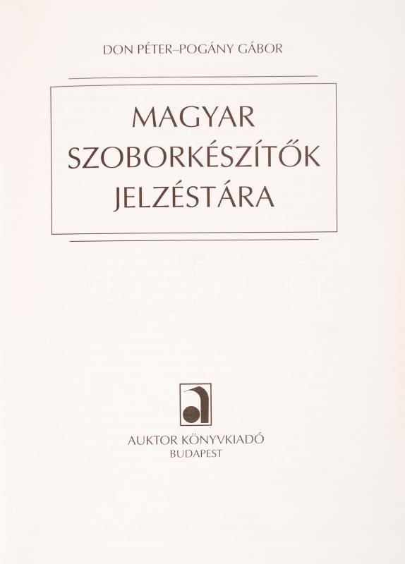 Don Péter, Pogány Gábor: Magyar szoborkészítők jelzéstára. Bp., 2003, ... https://www.darabanth.com/de/220-Fernauktion/220.0/Andere-Sammelgebiete/Bucher-Architektur-Kunst~10017/Don-Peter-Pogany-Gabor-Magyar-szoborkeszitok-jelzestara-Bp-2003-Auktor-Konyvkiado-K~II935856