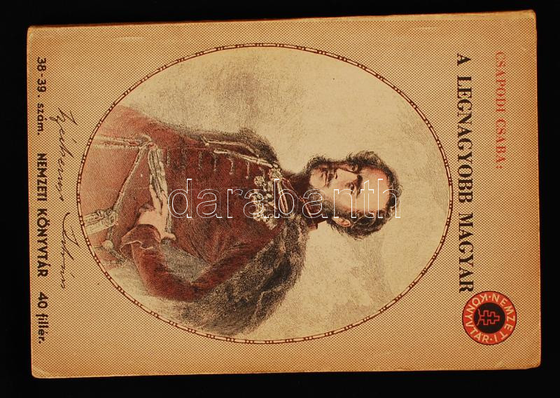 Csapodi Csaba: A legnagyobb magyar. Bp., 1941., Stádium Rt. (Nemzeti K... https://www.darabanth.com/de/220-Fernauktion/220.0/Andere-Sammelgebiete/Bucher-Geschichte~10041/Csapodi-Csaba-A-legnagyobb-magyar-Bp-1941-Stadium-Rt-Nemzeti-Konyvtar-Papirkotesben-~II943450