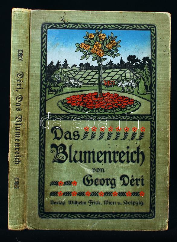 Georg Déri: Das Blumenreich. Populäre Beschreibung der Garten-, Zimmer- und Gewächshauspflanzen und der ihnen verwandten Feld- und Alpenblumen. MIt 240 Abbildungen. Wien, Leipzig, 1911, Wilhelm Frick. Kiadói festett egészvászon kötés, belsejében ceruzás jegyzetekkel, kopottas állapotban /