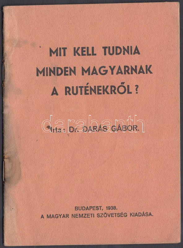 1938 Bp., Darás Gábor: Mit kell tudnia minden magyarnak a ruténekről? ... https://www.darabanth.com/de/220-Fernauktion/220.0/Andere-Sammelgebiete/Drucksachen~10038/1938-Bp-Daras-Gabor-Mit-kell-tudnia-minden-magyarnak-a-rutenekrol-A-Magyar-Nemzeti-SzovetsC3~II943192