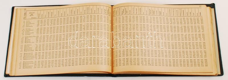Beschreibung: 1942 Bp., Hazai Vasutak Fuvardíjszabási Táblázatai és Kilómétermutatója, összeállította Csutorás László cégvezető, 311p