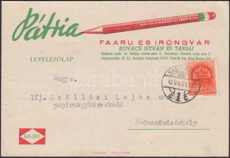 1942 Kovács István írószergyára Nagyvárad levelezőlap https://www.darabanth.com/de/220-Fernauktion/220.0/Andere-Sammelgebiete/Drucksachen~10038/1942-Kovacs-Istvan-iroszergyara-Nagyvarad-levelezolap~II946306