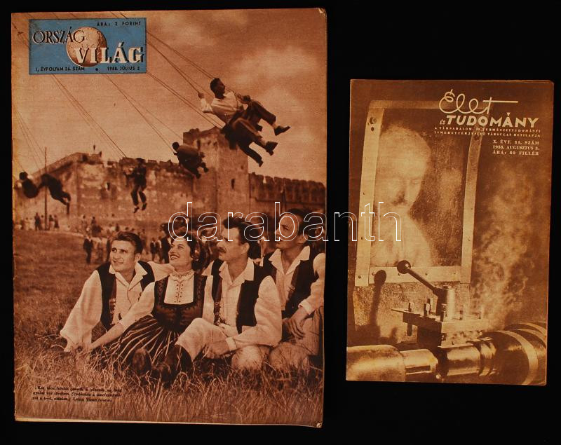 1955-1958 az Élet és Tudomány és az Ország-világ c. ismeretterjesztő hetilapok egy-egy száma sok fényképpel, érdekességekkel, utazási és sporthírekkel, valamint aktuális politikai hírekkel a nagyvilágból.