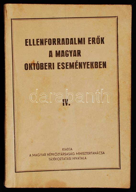 Ellenforradalmi erők a magyar októberi eseményekben IV. kötet MNM tájé... https://www.darabanth.com/de/220-Fernauktion/220.0/Andere-Sammelgebiete/Drucksachen~10038/Ellenforradalmi-erok-a-magyar-oktoberi-esemenyekben-IV-kotet-MNM-tajekoztatasi-hivatala-195~II941993