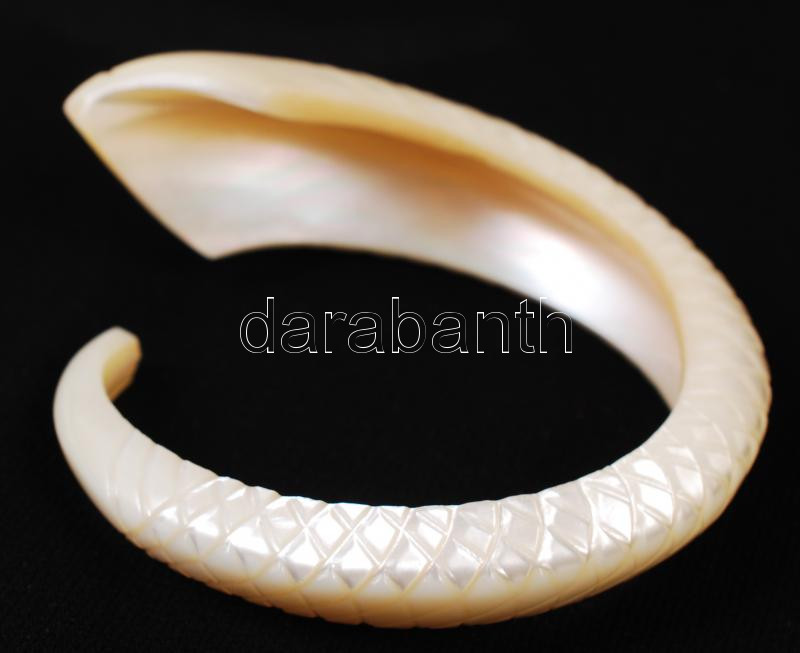 Beschreibung: Gyöngyház karkötő kézzel vésett díszítéssel, d: 8 cm