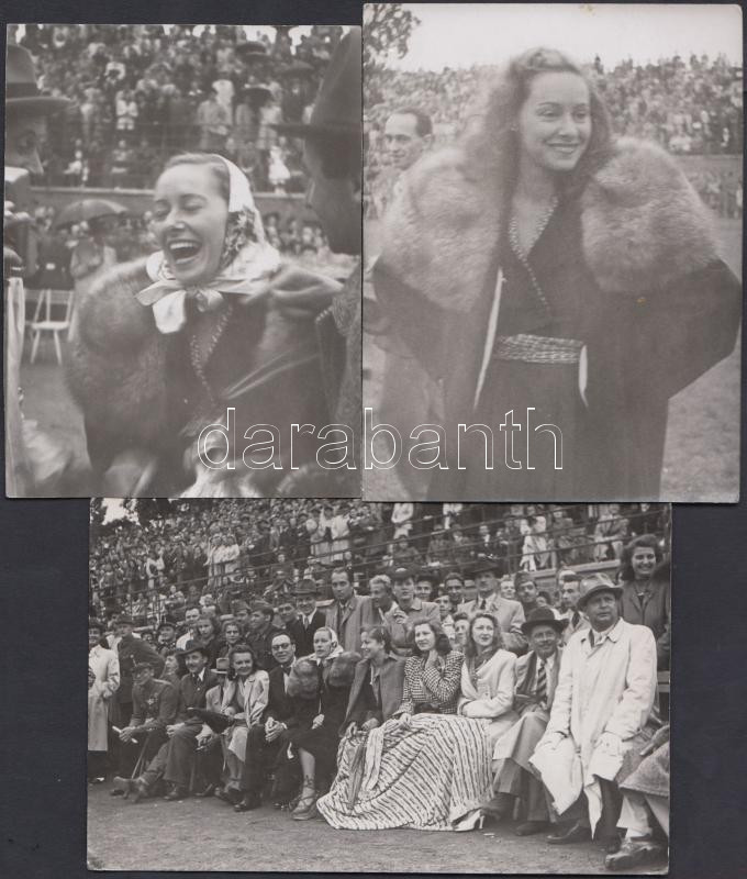 Beschreibung: cca 1944 Tiszavölgyi József: Muráti Lili – és más színészek - egy sportrendezvény megnyitóján, 2 db fotó, 12x9 és 9x14 cm