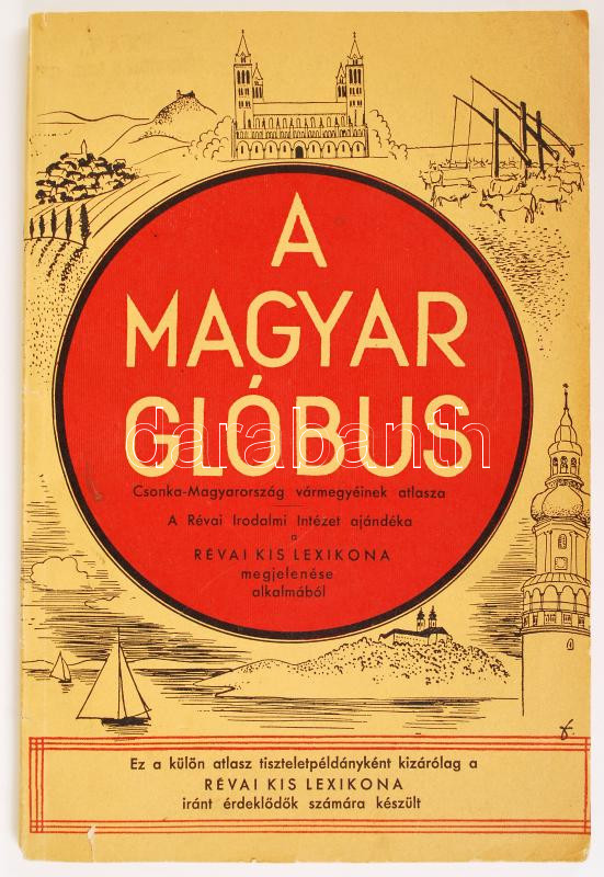 Beschreibung: cca 1930-1940 A magyar glóbus, Csonka-Magyarország vármegyéinek atlasza, A Révai Irodalmi Intézet ajándéka a Révai Kis Lexikona megjelenése alkalmából