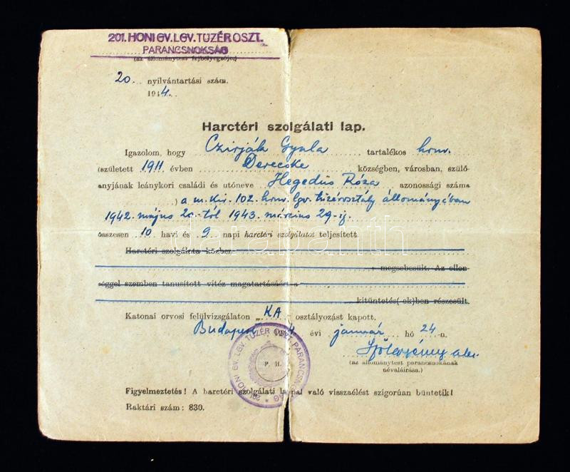 1944 Harctéri szolgálati lap https://www.darabanth.com/de/220-Fernauktion/220.0/Andere-Sammelgebiete/Militaria~10031/1944-Harcteri-szolgalati-lap~II941818