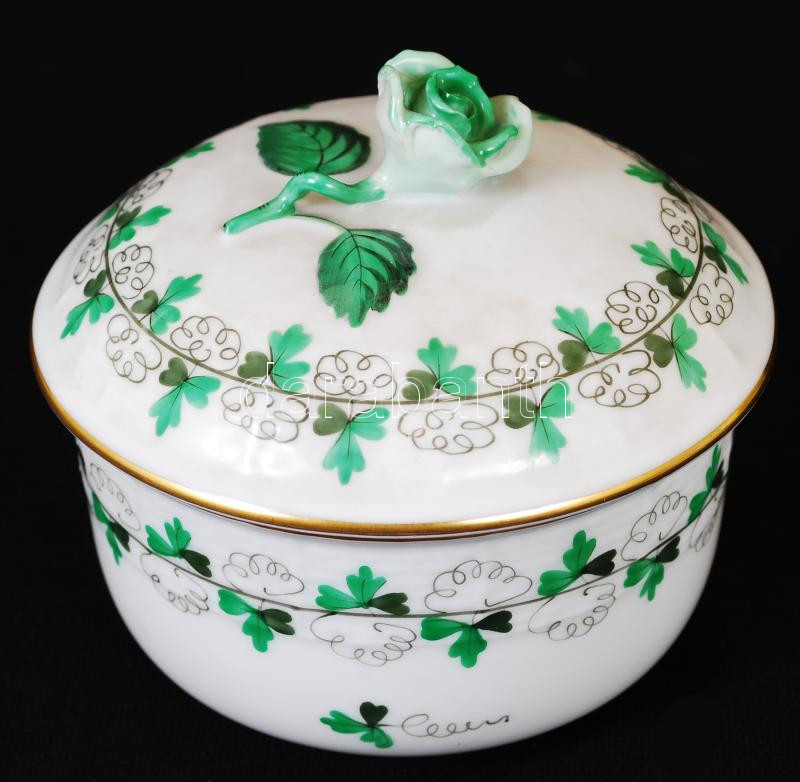 Beschreibung: Herendi petrezselyem mintás cukortartó, kézzel festett, jelzett, hibátlan, d:11,5 cm, m:10 cm