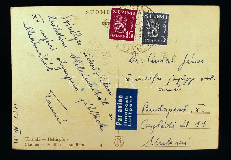 1952 Homonnay Tamás rúdugró saját kézzel írt lapja A Helsinki olimpiár... https://www.darabanth.com/de/220-Fernauktion/220.0/Andere-Sammelgebiete/Signatur~10010/1952-Homonnay-Tamas-rudugro-sajat-kezzel-irt-lapja-A-Helsinki-olimpiarol~II932758