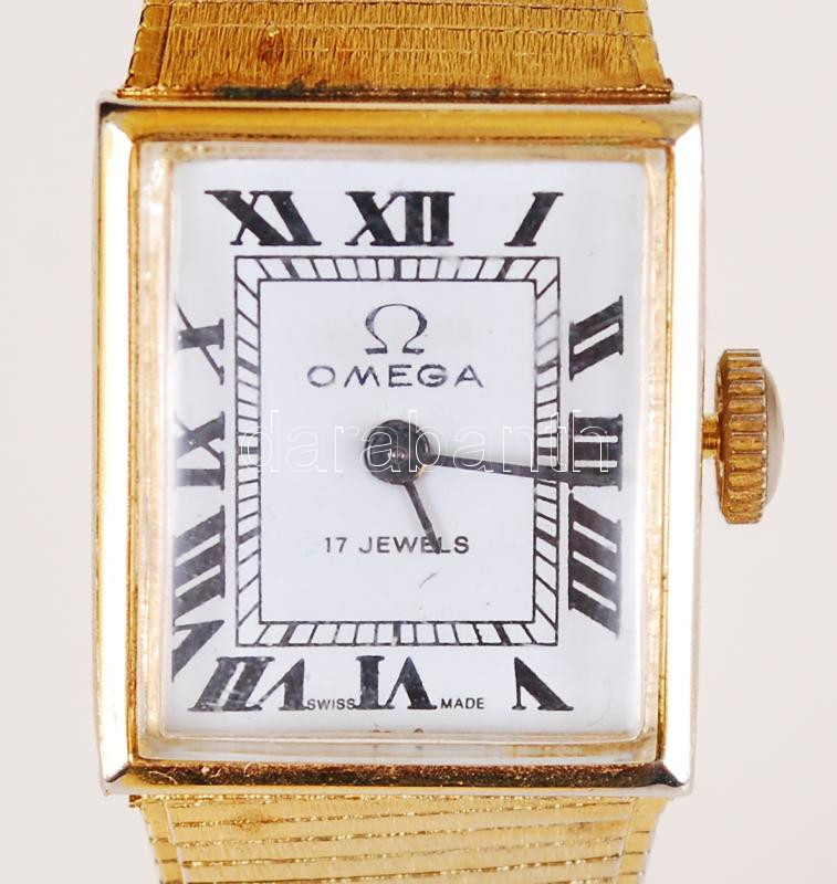 Beschreibung: Omega 17 Jewels mechanikus női karóra fém szíjjal, működőképes állapotban /