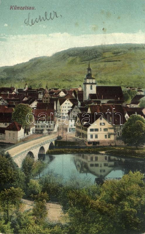 Beschreibung: Künzelsau, Gasthaus Rappen, church, bridge, No. 557