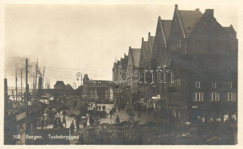 Bergen, Tyskebryggen / German pier, ships https://www.darabanth.com/de/220-Fernauktion/220.0/Ansichtskarten/Norwegen~6000361/Bergen-Tyskebryggen-German-pier-ships~II945931