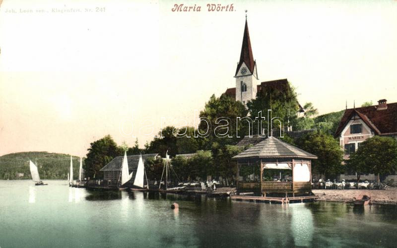 Maria Wörth, church, Marien villa https://www.darabanth.com/de/220-Fernauktion/220.0/Ansichtskarten/Osterreich~6000296/Maria-Worth-church-Marien-villa~II945595