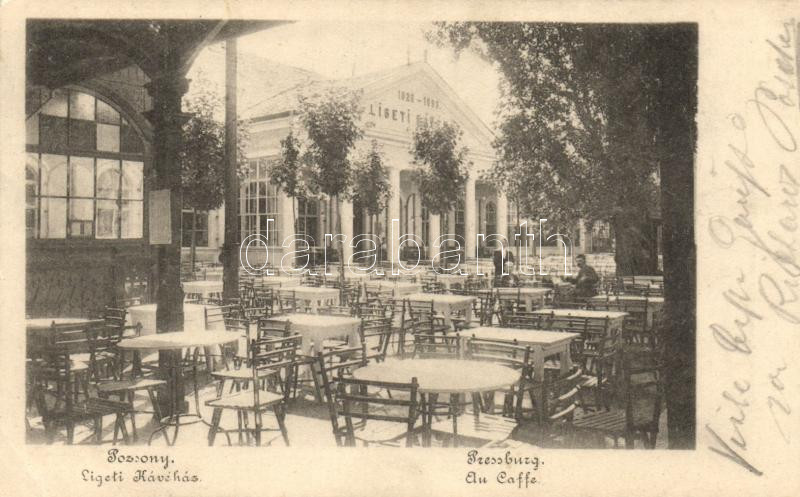 Pozsony, Ligeti kávéház / park cafe (EK) https://www.darabanth.com/de/220-Fernauktion/220.0/Ansichtskarten/Slowakei~30008/Pozsony-Ligeti-kavehaz-park-cafe-EK~II943601