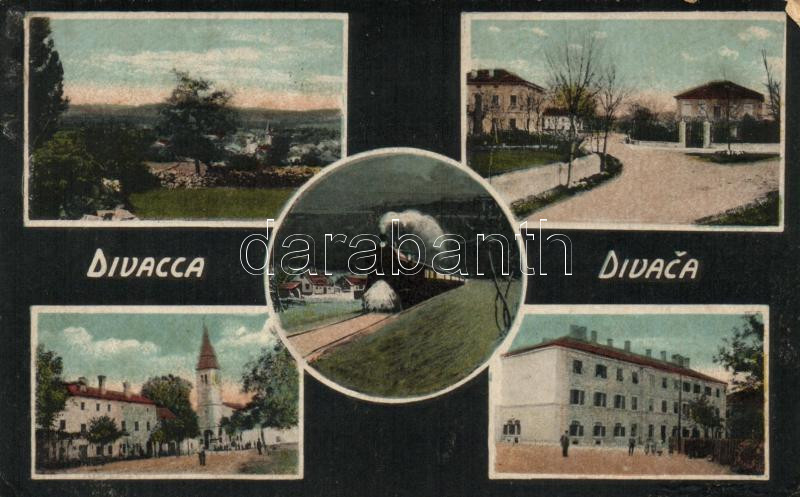 Beschreibung: Divaca, Divacca; locomotive, church, 8676 a. - B.K.S.W.I. (93) (EK)