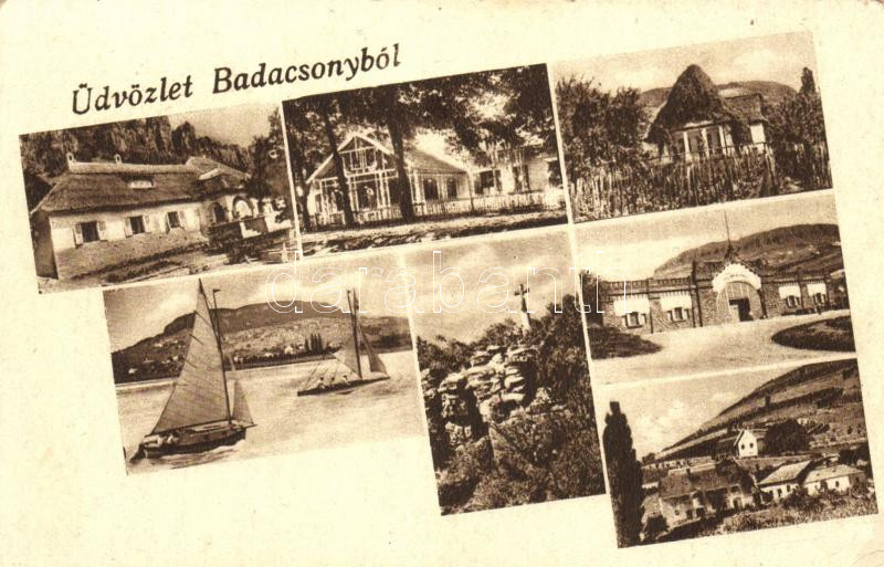 Badacsony, Állami borpince, Kisfaludy ház, szőlőhegy https://www.darabanth.com/de/220-Fernauktion/220.0/Ansichtskarten/Ungarn~30006/Badacsony-Allami-borpince-Kisfaludy-haz-szolohegy~II944287