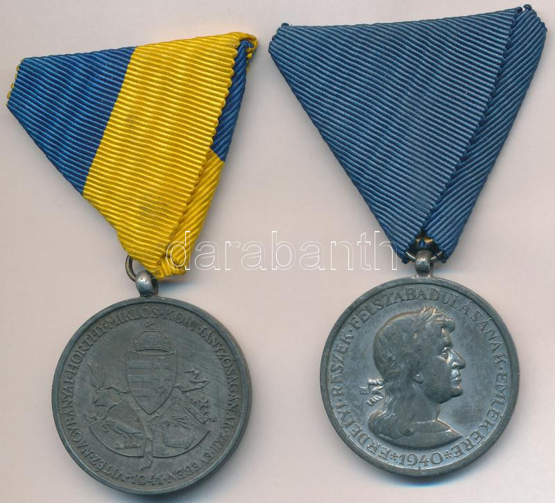 Hungary 1940. Commemorative Medal for the Liberation of Transylvania with ribbon. Sign.:BERÁN + 1941. "Commemorative Medal for the Return of Southern Hungary" zinc medal with ribbon. Sign.:BERÁN L. C:VF