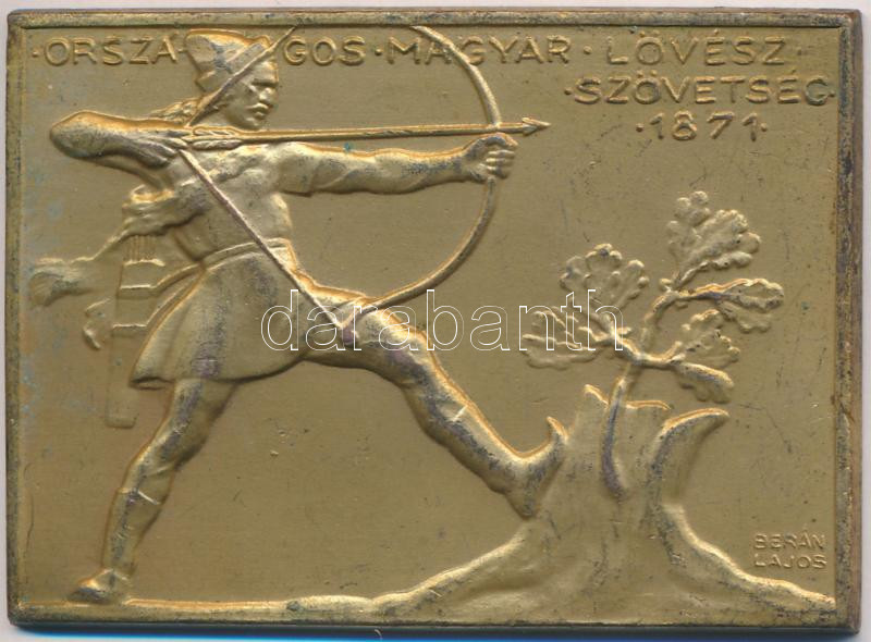 Beschreibung: Berán Lajos (1882-1943) / Berán Nándor (1889-1965) 1935. "Országos Magyar Lövész Szövetség" fém plakett (70x50,5mm) T:2,2-