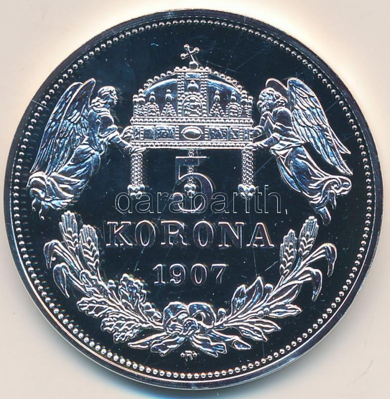 Beschreibung: DN "A Magyarok Krónikája - "Hogy a Szent Korona Téged méltán illet" / 1907. 5K" ezüstözött multicolor emlékérem (42mm) T:PP Tanúsítvánnyal.