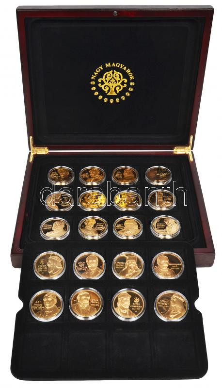 Beschreibung: ifj. Szlávics László (1959-) 2012. "Nagy Magyarok" (20xklf) aranyozott réz emlékérem sorozat tanúsítványokkal eredeti díszdobozban (40mm) T:PP