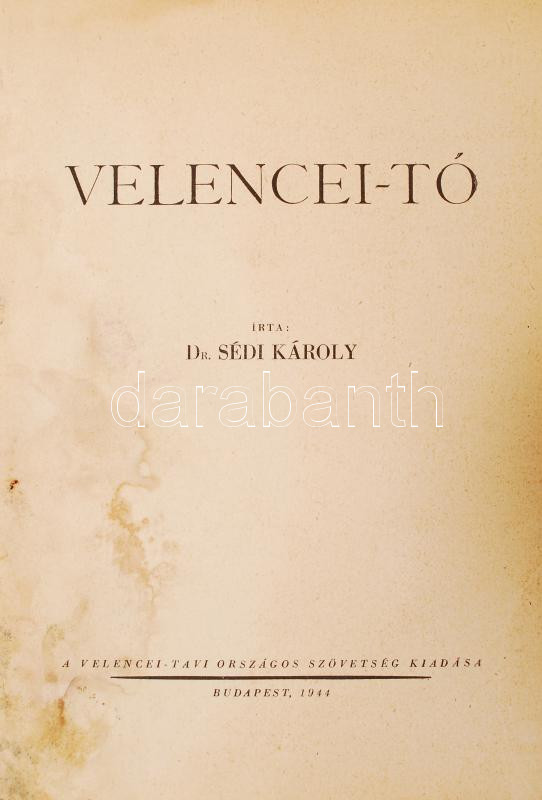 Sédi Károly dr.: Velencei -tó. Bp., 1944, A Velencei-Tavi Országos Szö... https://www.darabanth.com/de/221-Fernauktion/221.0/Andere-Sammelgebiete/Bucher-Reisen-Stadte~1600013/Sedi-Karoly-dr-Velencei-to-Bp-1944-A-Velencei-Tavi-Orszagos-Szovetseg-Kiadasa-Papir-k~II952715