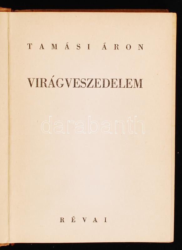 Tamási Áron: Virágveszedelem. Budapest, 1938, Révai. Díszített félvász... https://www.darabanth.com/de/221-Fernauktion/221.0/Andere-Sammelgebiete/Bucher-Sonstige-Raritaten~1600041/Tamasi-Aron-Viragveszedelem-Budapest-1938-Revai-Diszitett-felvaszon-kotesben-Gerinc-~II949950