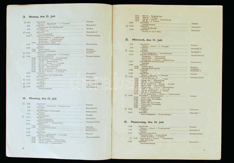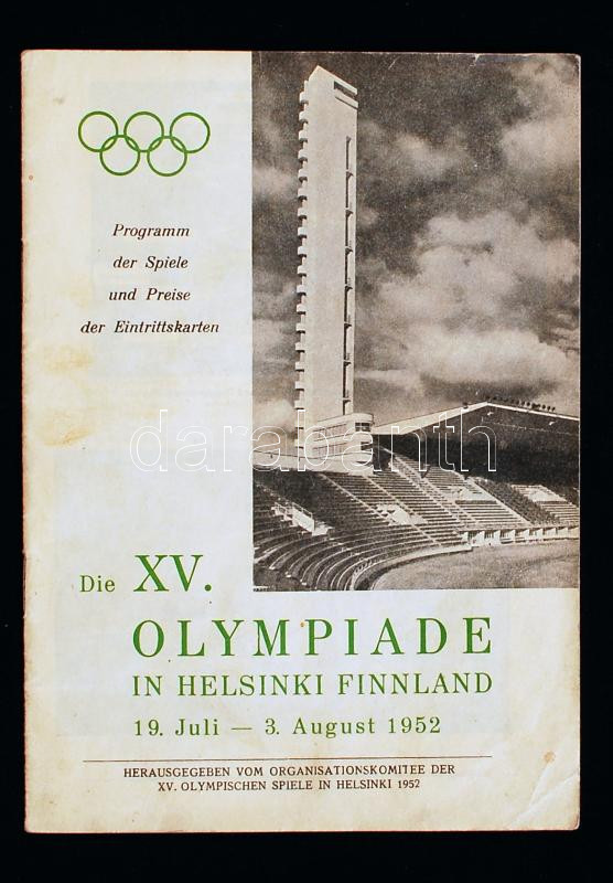 1952 XV. Olimpia Helsinki, Finnország. 1952. 07. 19- 08. 03. Program és árjegyzék füzet. Német nyelvű. / Die XV. Olimpiade in Helsinki Finnland. 19. Juli- 3. August 1952. Programm der Spiele und Preise der Eintrittskarten. /