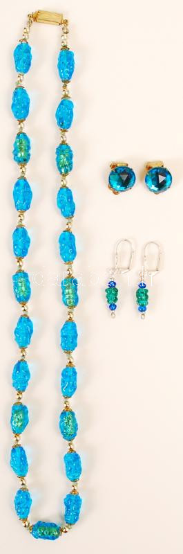 Beschreibung: Kék gyöngy nyaklánc1 pár fülklipsszel, 1 pár fülbevalóval