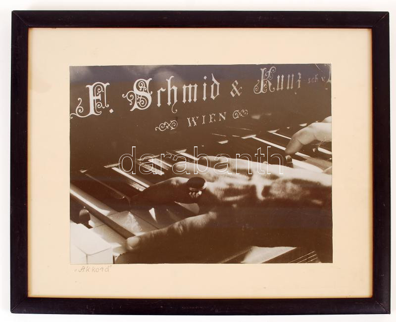 Beschreibung: Horváth Péter: Akkord. 23,5x29,5cm, Üvegezett, keretes (36x43), paszpartúban. Fekete-fehér,fotó cc. 1968 Szerzői jegyzetekkel a hátoldalon.