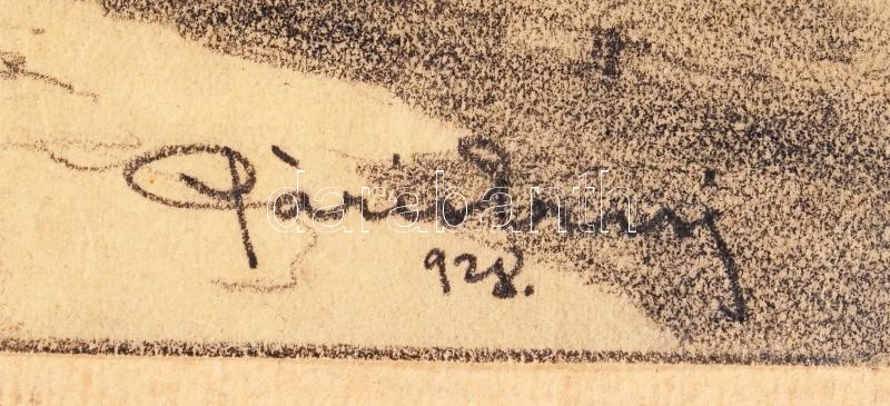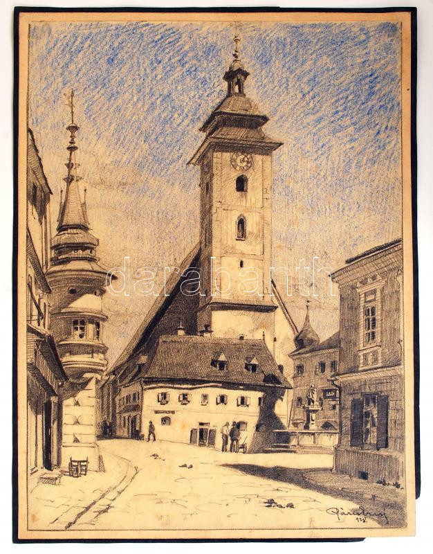 Beschreibung: Páris Erzsébet, (1887-?): Főtér. Ceruza, papír, jelzett, 30×23 cm