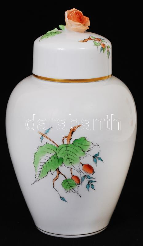 Herendi kézzel festett csipkebogyó mintás fedeles váza, tetején a rózs... https://www.darabanth.com/de/221-Fernauktion/221.0/Andere-Sammelgebiete/Porzellan~1600150/Herendi-kezzel-festett-csipkebogyo-mintas-fedeles-vaza-tetejen-a-rozsa-serult-jelzett-m-~II952641