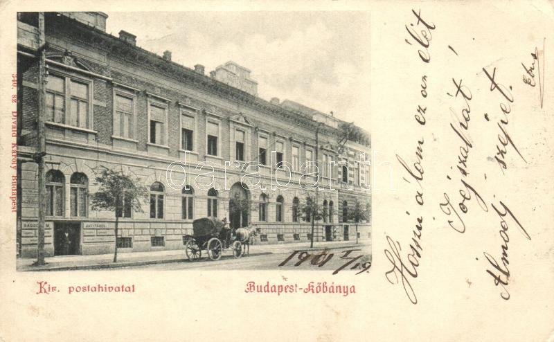 Budapest X. Kőbánya, Királyi postahivatal, kiadja Divald Károly (EK) https://www.darabanth.com/de/221-Fernauktion/221.0/Ansichtskarten/Ungarn~400006/Budapest-X-Kobanya-Kiralyi-postahivatal-kiadja-Divald-Karoly-EK~II951677