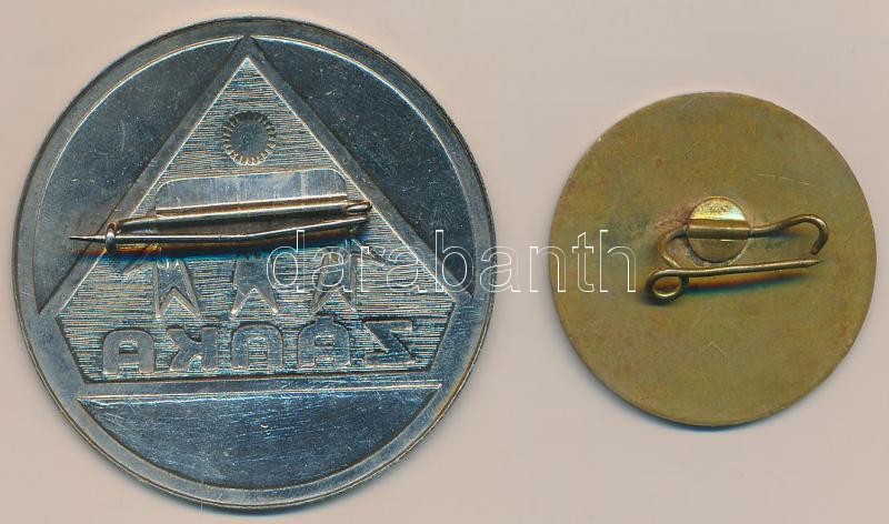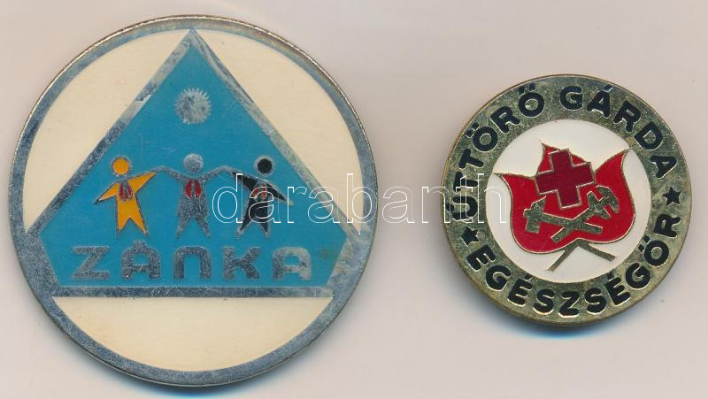 Beschreibung: DN "Úttörő Gárda - Egészségőr" zománcozott fém jelvény (34mm) + "Zánka" zománcozott fém jelvény (50mm) T:2-