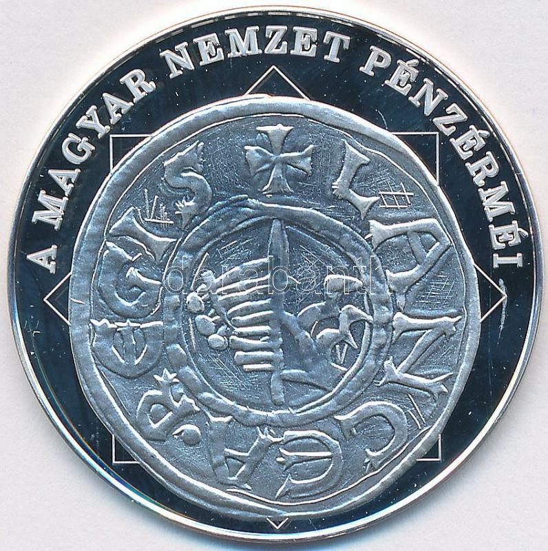 Beschreibung: DN "A magyar nemzet pénzérméi - Szent István és az első magyar pénz 997-1038." Ag emlékérem (10,37g/0.999/35mm) T:PP Tanúsítvánnyal