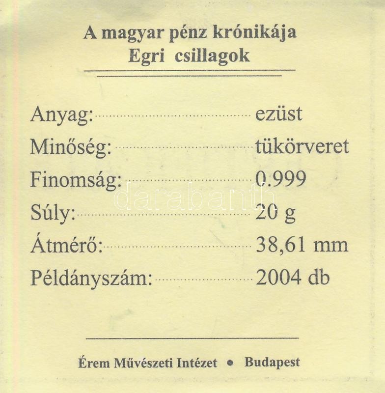 DN "A magyar pénz krónikája - Egri csillagok" Ag emlékérem (20g/0.999/... https://www.darabanth.com/de/221-Fernauktion/221.0/Numismatik/Ungarische-Edelmetall-Gedenkmunzen~200011/DN-A-magyar-penz-kronikaja--Egri-csillagok-Ag-emlekerem-20g099938-61mm-TPP-TanusitvC3~II952977