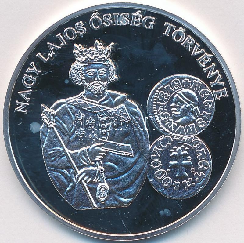 Beschreibung: DN "A magyar pénz krónikája - Nagy Lajos ősiség törvénye" Ag emlékérem (20g/0.999/38,61mm) T:PP