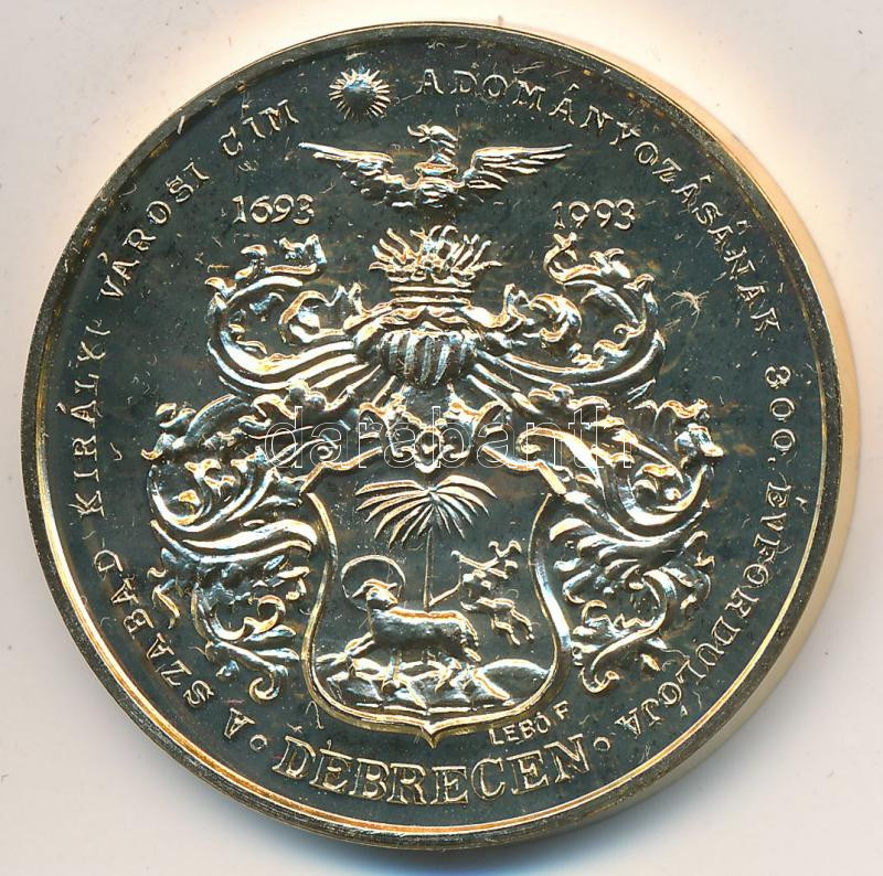 Beschreibung: Lebó Ferenc (1960-) 1993. "A szabad királyi városi cím adományozásának 300. évfordulója / Lipót" aranyozott emlékérem (43mm) T:PP