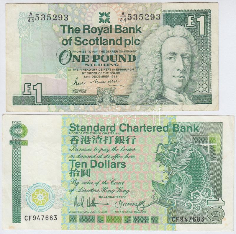 Vegyes: Skócia 1988. 1Ł + Hong Kong 1988. 10$ T:II-,III